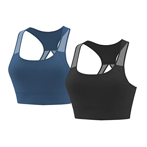 - [T WILKER] 2枚組スポーツブラ 揺れない ヨガウェア レディース トップス 通気性 ナイトブラ スポーツブラジャー ヨガブラ 細い紐がXデザイン 可愛い ブラトップ 伸縮性 スポーツウェア ノンワイヤーブラ ブラジャー (ブラック+ブルー, M)