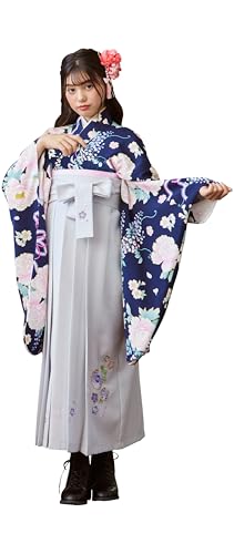 - [アリサナ]arisana 卒業式 袴 セット 小学校 小学生 女の子 和服 卒業 (着物+半襟付き襦袢+袴+帯枕付き帯+腰紐x2の6点) A.ネイビー着物×薄紫袴 150cm カラーA16,800円