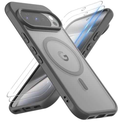 【1個+2枚セット】For Google Pixel 10/10 Pro ケース(1個·MagSafe対応)+ガラスフィルム(2枚) Pixel 10/10 Pro 対応 保護ケース Greerass ガラスフィルム付き 薄型 超軽量 耐衝撃 擦り傷防止 指紋·汚れ防止 手触り良い 着脱簡単 (ブラック)