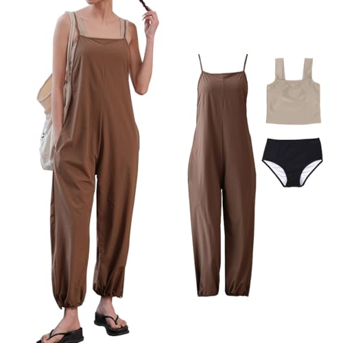 - [Teddy] 水着 レディース 体型カバー タンキニ Vネック ビキニ ワイドパンツ 3点セット hys2318 (カーキ, M(7号))3,980円