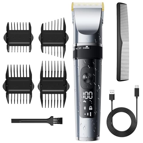 - バリカン メンズ 【2025革新モデル・コードレス&極長稼働】 業界TOP大容量バッテリー Type-C充電式 LED大型ディスプレイ 残量表示 5段階刈り高さ 8種類ガイドコーム 低騒音 3段階スピード調節 ヘアカッター 動バリカン 散髪用 髪 水洗い可 安全ロック付き IPX7 防水 ヒゲトリマー 軽量 セルフカット ツーブロック 坊主用 子供 家庭用 日本語説明書2,590円〜