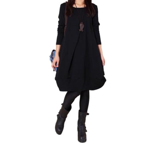 [Leadamon-oee] ワンピース レディース 長袖 チュニック ロングワンピース 膝丈 コクーン シルエット ゆったり 体型カバー 丸首 マキシ ワンピース 無地 大きいサイズ きれいめ 大人 可愛い おしゃれ カジュアル 普段着 通勤 春 秋 冬