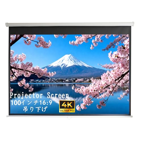 - プロジェクター スクリーン100インチ16:9フルハイビジョン 手動吊り下げ 壁掛け ロール式 天吊り スクリーン 巻き上げ スクリーン 壁掛け プロジェクター 用 ガラス繊維素材 会議用 教室用 家庭用投影スクリーン (100インチ16:9)