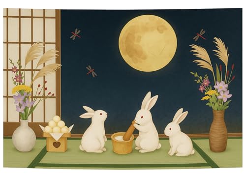 next.design タペストリー 十五夜 中秋 月見 お月見 月 満月 秋 うさぎ 団子 飾り インテリア 大判 夜景 紅葉 撮影 背景 布 きれい 癒し おしゃれ 大きい インスタ映え グッズ 小物 テレワーク 背景布 部屋 飾り付け zoom 映え (デザイン1)
