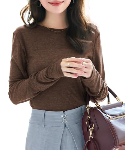 [神戸レタス] シアー トップス レディース 秋服 長袖 シアーシャツ 春 夏 秋 冬 シアートップス 長袖シアー ドレープ クルーネック ボートネック インナー [C7663] M Aベーシック ブラウン