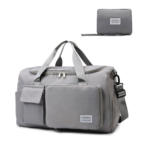 ボストンバッグ スポーツバッグ 旅行バッグ 修学旅行 大容量 防水 シューズ収納 レディース メンズ 男女兼用 軽量 折りたたみ 乾湿分離 4way メッセンジャーバッグ ハンドバッグ おむつバッグな ショルダーバッグ ジムバッグ 2泊3日 コンパクト バッグ 斜めがけ アウトドア ゴルフバッグ 機内持込 旅行 多機能 出張 運動 (グレー)
