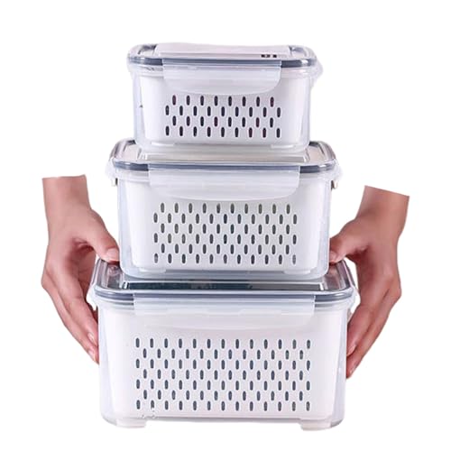 - 食品保存容器 蓋付き 冷蔵庫収納ケース 野菜水切り器 保存容器 水切り保存パック ザル付 収納ボックス 大容量 野菜 果物収納 冷蔵庫整理ケース キッチン (M)1,999円