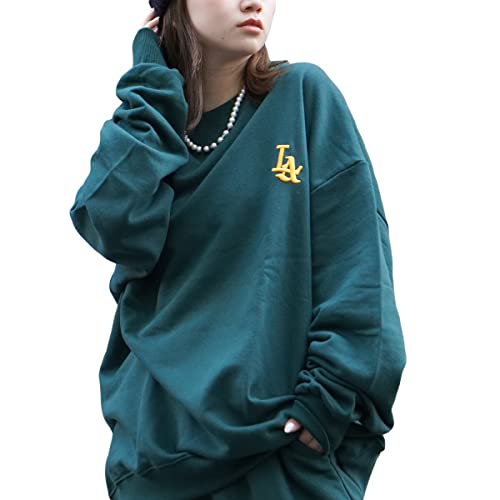 1111clothing オーバーサイズ スウェット メンズ トレーナー レディース ◆LA ロゴ刺繍 ビッグスウェット◆ ビッグシルエット トップス 長袖 LAロゴ セットアップ 可能 グリーン Free Size