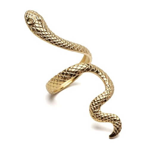 [silver KYASYA]スネークリング 巻き付く 蛇リング 大ぶり ゴールドリング 指輪 18KGP ゴールド ステンレス キルティング うねり 存在感 レディース フリーサイズ 金属アレルギー対応(ゴールド)
