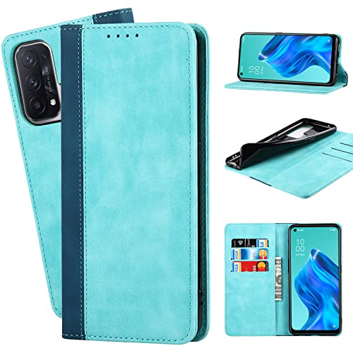 Havaya OPPO Reno5 A ケース オッポ リノ 5 a ケース A1010P A103OP スマホケース CPH2199 手帳型 au 耐衝撃 docomo カバー 楽天モバイル マグネット式 SoftBank カード収納 スタンド機能 レザー-ライトブルー+ダークブルー