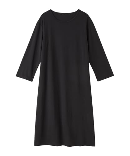 - [ニッセン] パジャマ・ルームウェアトップス 3秒ルームワンピ2枚組 綿混 ゆったり 5分袖 ルームワンピース 黒+グレー L2,461円