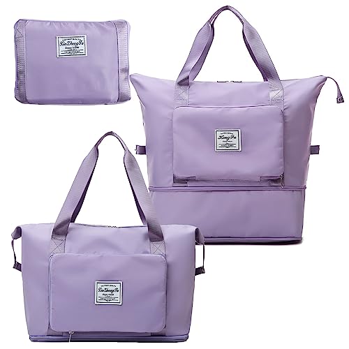 [MRG] ボストンバッグ キルティング 旅行バッグ 大容量 キャリーオンバッグ 折り畳み トラベルバッグ トートバッグ 2WAY 軽量 コンパクト 防水 カバン バッグ サイズ調整可能 韓国風 (パープル)