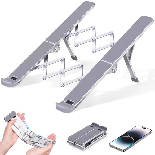 MOHOPE ミニ ノートパソコンスタンド 2025最新 ノートパソコンスタンド 折りたたみ ポケット収納 持ち運びに便利 軽量 pcスタンド タブレット スタンド 角度調整 姿勢改善 ノートパソコン 冷却台 滑り止め 17インチまで対応 シルバー