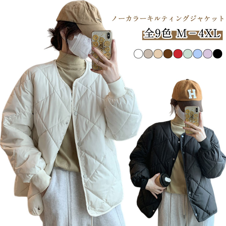 - ノーカラー キルティング ジャケット レディース アウター 中綿ジャケット キルティングコート ノーカラーコート ダウン風コート 長袖 中綿コート ショート丈 上着 軽量 インナーダウン インナージャケット きれいめ カジュアル 防寒 暖かい 秋 冬 アウター 送料無料2,790円