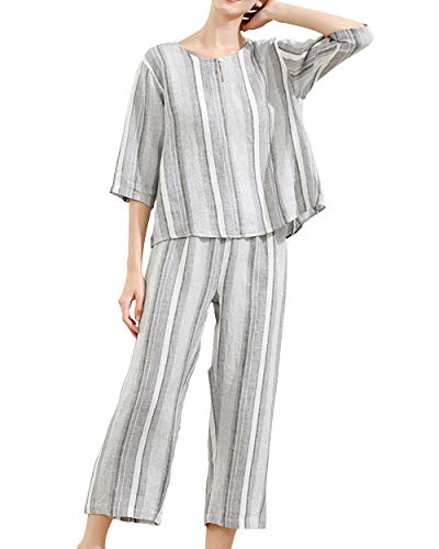 - [RAKUYUME] 本麻パジャマ レディース 高級 リネン ルームウェア カップル 長袖 部屋着 上下 セット 前開き かわいい 肌に優しい 吸汗速乾 春 夏 秋6,990円