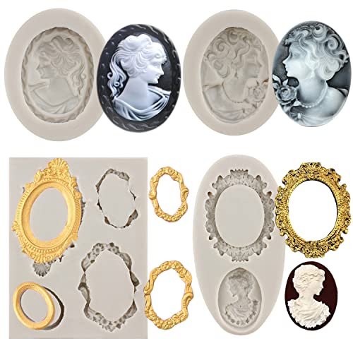 TEYOULIN カメオ写真フレーム シリコンモールド レディアバター フォトフレーム フォンダン型 ヴィンテージフレーム型 ケーキデコレーション カップケーキトッパー キャンディチョコレートガムペースト ポリマークレイ 4個セット