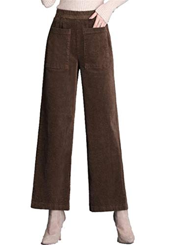 [ベィジャン] コ一デュロイ パンツ レディース ワイドパンツ ハイウエスト ウエストゴム 厚手 ヴィンテージ 秋冬 おしゃれ 着痩せ カジュアルパンツ ストレートパンツ ボトムス 通勤 通学 原宿系 (ブラウン,XL)