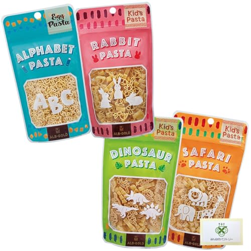 アルボ・ゴルド パスタ 【4種】 (アルファベット ラビット ディノサウルス サファリ) 各1袋 アルボゴールド ショートパスタ エッグパスタ ABC 恐竜 ウサギ 動物 ティラノサウルス /みんなのパントリーカードセット