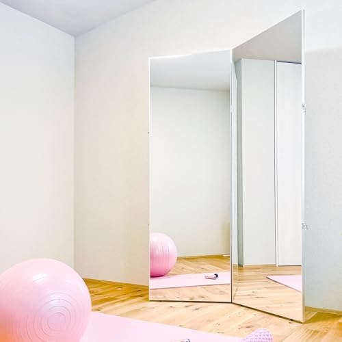 7 Life 割れないミラー 大型ミラー 全身鏡 2面鏡 軽量 折り畳み可能 フィルムミラー 姿見鏡 自立鏡 完成品 大型 飛散防止 地震対策 フィットネス ダンス 筋トレ おしゃれ バレエ ピラティス ダンス練習 (シルバー, 180×120cm)