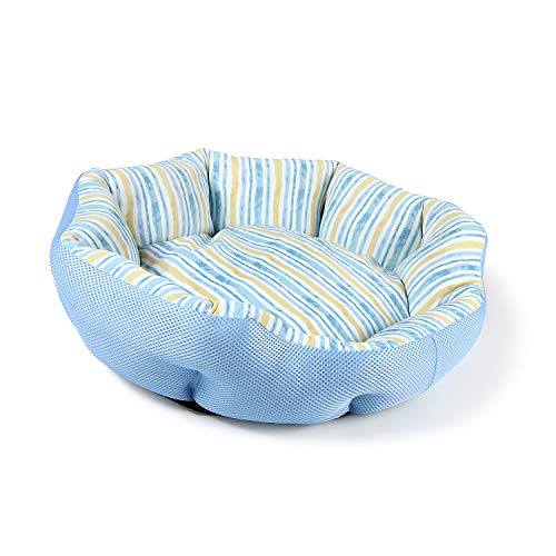 Peto-Raifu ペット ベッド ソファー ペットクッション マット 小型 中型 犬 猫 小動物 ラウンド型 洗える 冷感 ひんやり メッシュ 通気性いい ふわふわ 夏秋用 暑さ対策 ペット用品 ストライプー 45x40x14cm