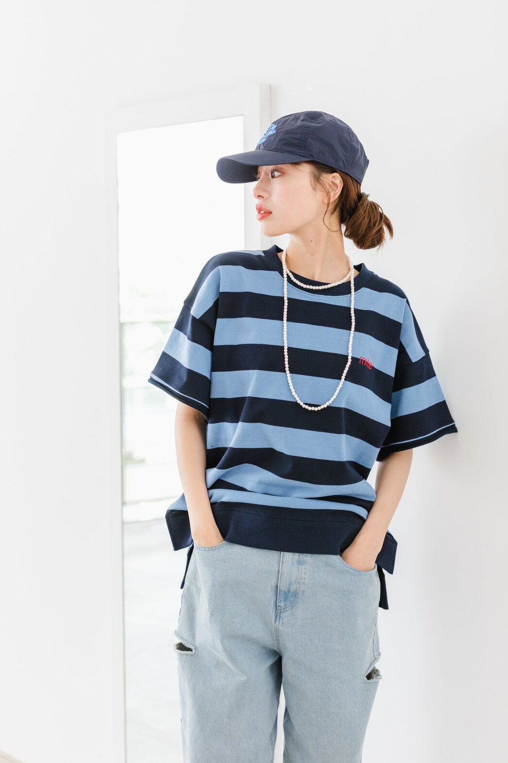 ボーダー 半袖 Tシャツ レディース メンズ 男女兼用 ユニセックス ノームコア トップス ロゴTシャツ 半袖Tシャツ カットソー 体型カバー オーバーサイズ ゆったり シアー ピグメント加工 コットン カジュアル 夏服 M L XL XXL 春夏 春 夏 秋