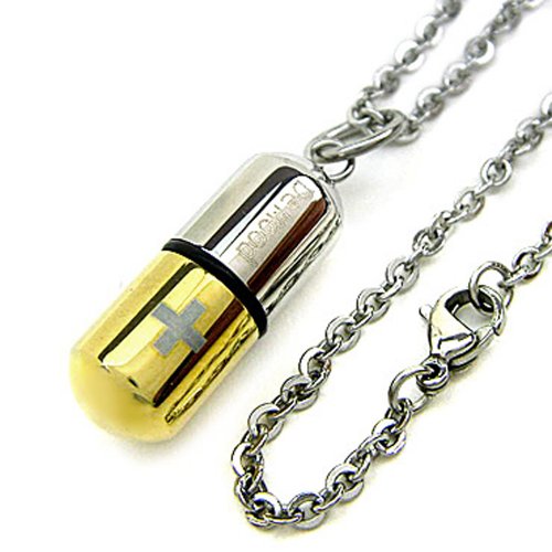- [Rockyu] ネックレス メンズ ピンクゴールド 18金 メディカルカプセル メモリアル ペンダント ネックレス カプセル型 ニトロ 薬 入れ 薬ケース ピルケース 防水 チタン 金属アレルギー対応1,488円〜