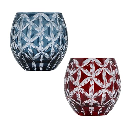 - 切子 キリコ ペア 切子グラス 切り子 ロックグラス 冷酒 焼酎 水割り お湯割り 祝い 誕生日 還暦 還暦祝い プレゼント ギフト 切子玉響 (レッド&マリン)7,300円