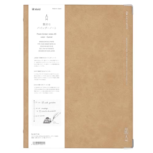 - 【送料無料】kleid クレイド フリークバインダーノート A5 キャメル 8穴リング 国内最高級紙 OKフル—ス紙 2mm方眼 天金加工 - メール便発送1,980円
