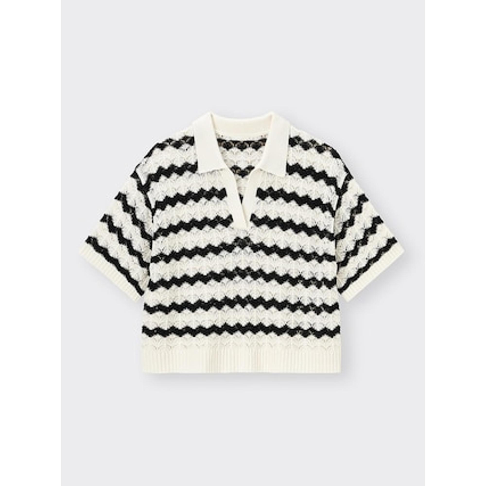 - 透かし編みボーダーニットシャツ(半袖)1,990円