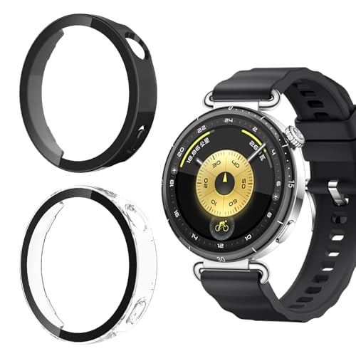 - 【2枚セッ】For HUAWEI Watch GT 6 41mm ケース ガラスフィルム+PCフレーム 一体型 保護フィルム Greerass 全面保護ケース 高透過率 全面保護 耐衝撃 指紋防止 撥水撥油 防水防塵 装着簡単 フイルム一体型ケース (ブラック+クリア)999円