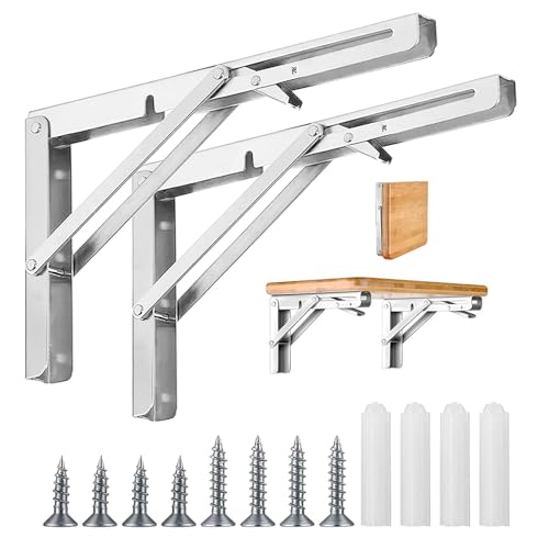 - 棚受け 金具 L字型 折 ステンレス鋼 ト ブラケット 壁 棚 収納 棚柱 おしゃ れ 折りたたみブラケットアクセサリー 収納 耐荷重50-150kg ネジ付 2本セット(シルバー) (40cm)1,818円〜