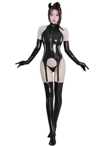 - ボンテージ コスプレ セクシー レオタード エナメル ボディスーツ セクシー コスチューム 女王様 コスプレ 衣装 ボンデージ 囚人 PVC レオタード 光沢 艶々 ブラック D225Q1,680円