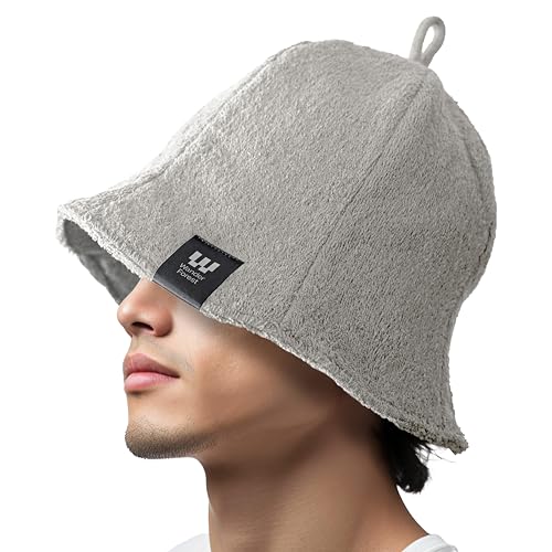 [Wander Forest] サウナハット 【超極厚タオル2重構造】 メンズ アウトドア多機能ヘッドウェア タオル 生地 大きめ サウナグッズ 極厚 2枚重ね ボンバーハット サウナ 帽子 テントサウナ (Free Size, 05.ライトグレー)