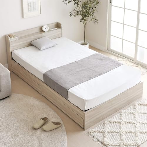 - 収納ベッド シングル ベッドフレーム 大容量 引き出し4杯 チェスト ベット 収納付きベッド シングルベッド 棚・コンセント付き ベッド下収納 フレームのみ シングル 宮棚 宮付き 木製ベッド ナチュラル〔D〕34,900円