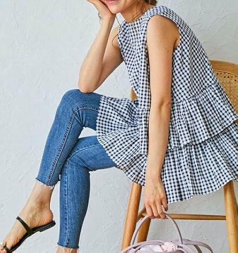 - \★ファイナルセール★8/30 12:00~/【 3way パールボタン ギンガムチェック ティアード ブラウス ジレ (cbm182)】 トップス カットソー 長袖 長そで フレア ボーダー 美ライン 楽ちん 体型カバー Tシャツ ロンT 春 春物 レディース Myu MYU myu メール便OK1,490円