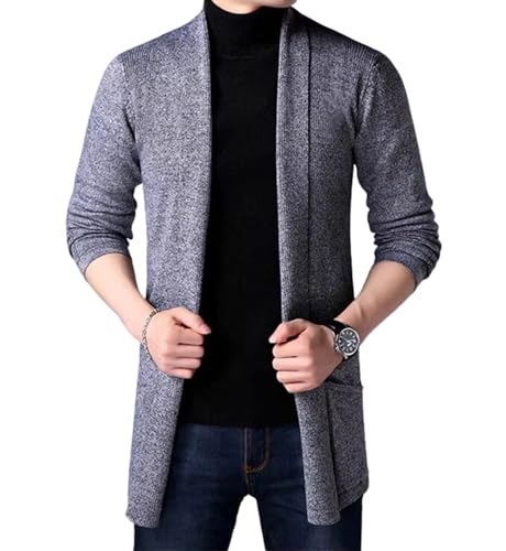 [Azul Mar] ロングカーディガン メンズ 前開き ニットカーディガン 羽織り 薄手 長袖 Iライン 細身 春 秋 アウター 上着 ロング丈 ニットジャケット 通勤 シンプル (JP, アルファベット, 2XL, 1, グレー)