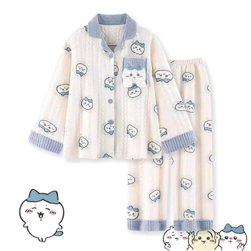[SPOORY] ちいかわ パジャマ 暖かい ハチワレ うさぎ 長袖パジャマスーツ 上下セット 2点 寝巻き モモンガ くりまんじゅう なんか小さくてかわいいやつ 厚手 部屋着 秋冬 柔らかい 快適な睡眠に 可愛い 男女兼用 大人用 誕生日 プレゼント (L)