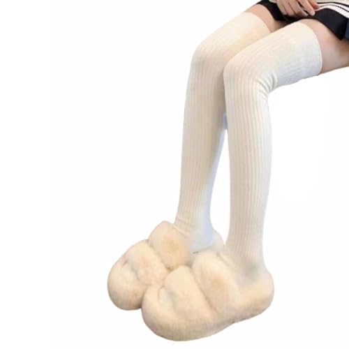 Yavoluy ニーハイソックス スクールソックス リブ編み 2足入り オーバーニー ハイソックス 靴下 レディース 厚手 ソックス 無地 保温 防寒 春 秋 冬 オーバーニーソックス 無地 くつ下 学生 女子高校生 通学 通勤 (ホワイト)