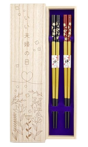 夫婦箸 【金舞桜(黒・赤)】 いい夫婦の日 デザイン桐箱・ラッピング付き 食洗 食洗機対応 いい夫婦 夫婦 めおと 夫 妻 両親 お父さん お母さん おとうさん おかあさん 父 母 おじいちゃん おばあちゃん 祖父 祖母 祖父母 プレゼント ギフト 贈り物 お祝い 《131-1》 (いい夫婦-花)