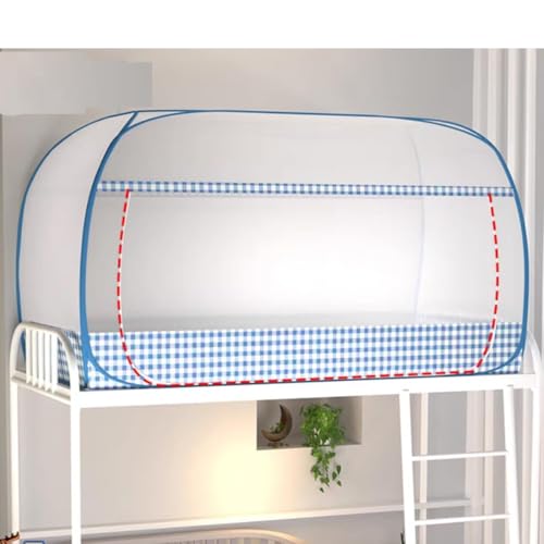 蚊帳 かや ワンタッチ蚊帳 底付き 折りたたみ式 蚊よけネット 自立式 組み立て簡単 収納便利 虫除け ムカデ対策 蚊よけ 通気性よい 室内 ゆったり 子供 大人 兼用 (ブルー, 幅100x奥行200x高さ115cm)