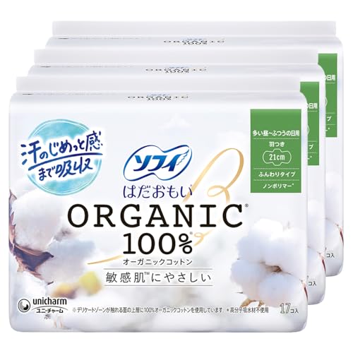 - ユニ・チャーム ソフィ はだおもい オーガニックコットン 極うすスリム 多い昼 ふつうの日用 羽つき 21cm (生理用品 ナプキン) 17枚 (医薬部外品)470円