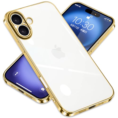 ZHUAZHULE iPhone16 ケース クリア アイフォン16 スマホケース メッキ加工 耐衝撃 カバー 透明 TPU レンズ保護 ストラップホール付き 薄型 黄変防止 擦り傷防止 人気 (ゴールド)