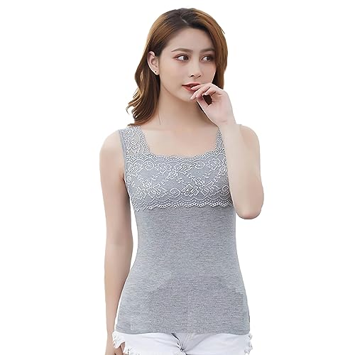 [fourfivesixはる] レース タンクトップ ブラ紐隠しインナー レディース スクエアネック キャミソール インナー 女性 肌着 下着 ノースリーブ カップなし 幅広ストラップ 重ね着 チラ見え防止 部屋着 レイヤード エレガント 肩紐レース (XL, ブラ紐隠し グレー)