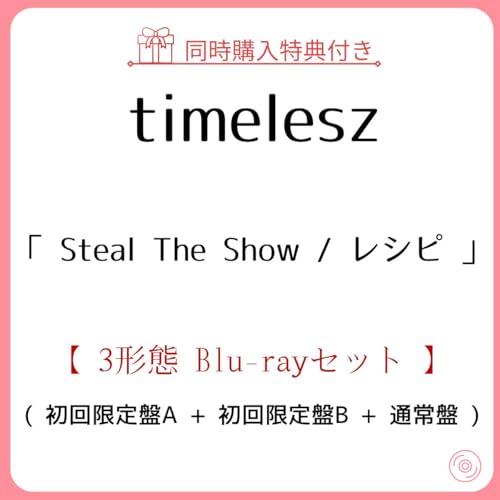 - 【3形態同時購入特典:ファンミーティング視聴用シリアルコード+オリジナルトレーディングカード9枚セット(集合1種+ソロ8種)付き】 timelesz Steal The Show/レシピ (初回盤A+初回盤B+通常盤) タイムレス シングル (Blu-rayセット)6,980円