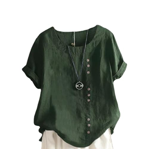 - 半袖シャツ レディース トップス ブラウス シャツブラウス 無地 大きいサイズ 半袖 シャツ ブラウス 綿混 夏 ラウンドネック 綿麻風 コットンリネン ゆったり チュニック シンプル ボタン飾り カジュアル 送料無料2,038円
