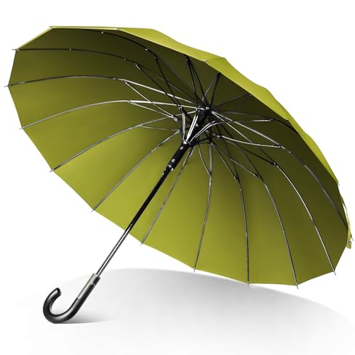 - 傘 メンズ 長傘 【高強度16本骨・超大サイズ】 ジャンプ傘 直径115cm 大きい 230T超撥水 丈夫なグラスファイバー 耐風傘 ワンタッチ 自動開け 紳士傘 埋め込みボタン 晴雨兼用 軽量 メンズ レディース 豪雨 梅雨対策 台風対応 雨傘 男女兼用 収納カバー付き (グリーン)