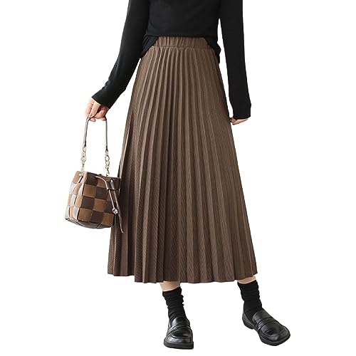 [7-livehouse] プリーツスカート ロング フレアスカート レディース 秋冬 体型カバー 無地 着痩せ Aライン ウエストゴム 大きいサイズ ゆったり おしゃれ 大人 エレガント 通勤 オフィス 旅行
