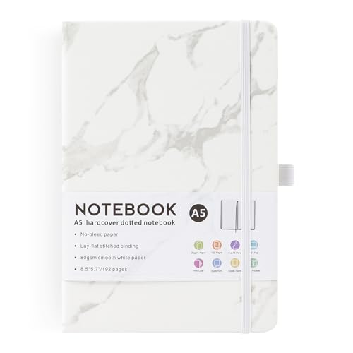 JUNART Lined Journal Notebook,192 Pages A5 Hardcover Notebook with Pen Loop Bookmark Inner Pocket for Office School Supplies,80gsm Leather Journal for Women Men(Marble White)