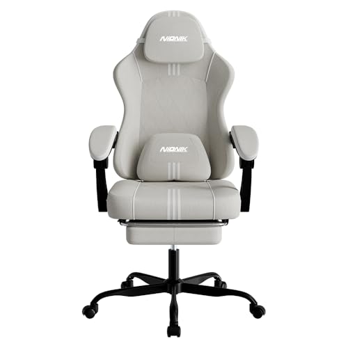 NIONIK ゲーミングチェア ファブリック オットマン付き オフィスチェア デスクチェア 通気性 テレワーク 疲れない 椅子 人間工学設計 連動式アームレスト 145°リクライニング パソコンチェア 幅広座面 座り心地よい 高耐久性 ゲーム用チェア ヘッドレスト&ランバーサポート 簡単組み立て (ベージュ)