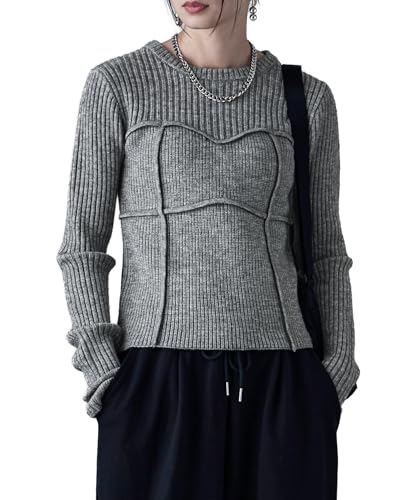 - ビスチェレイヤード風リブニット トップス レディース ニット プルオーバー クルーネック 長袖 リブ レイヤード シンプル3,511円